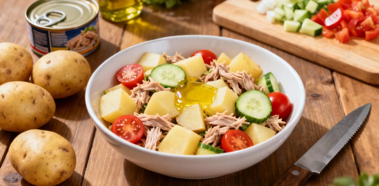 Cette salade pomme de terre thon fait partie de ces petits plats réconfortants que j’adore préparer quand j’ai envie de quelque chose de simple mais nourrissant. C’est une recette qui me rappelle les pique-niques d’été et qui plaît toujours à toute la famille. Elle associe la douceur des pommes de terre à la richesse du thon, le tout relevé par une vinaigrette maison parfumée aux herbes fraîches.
